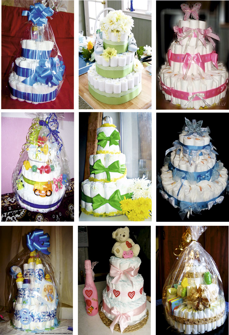 Итак - подарки из памперсов. Как правило это торты, велосипеды, конфеты.
